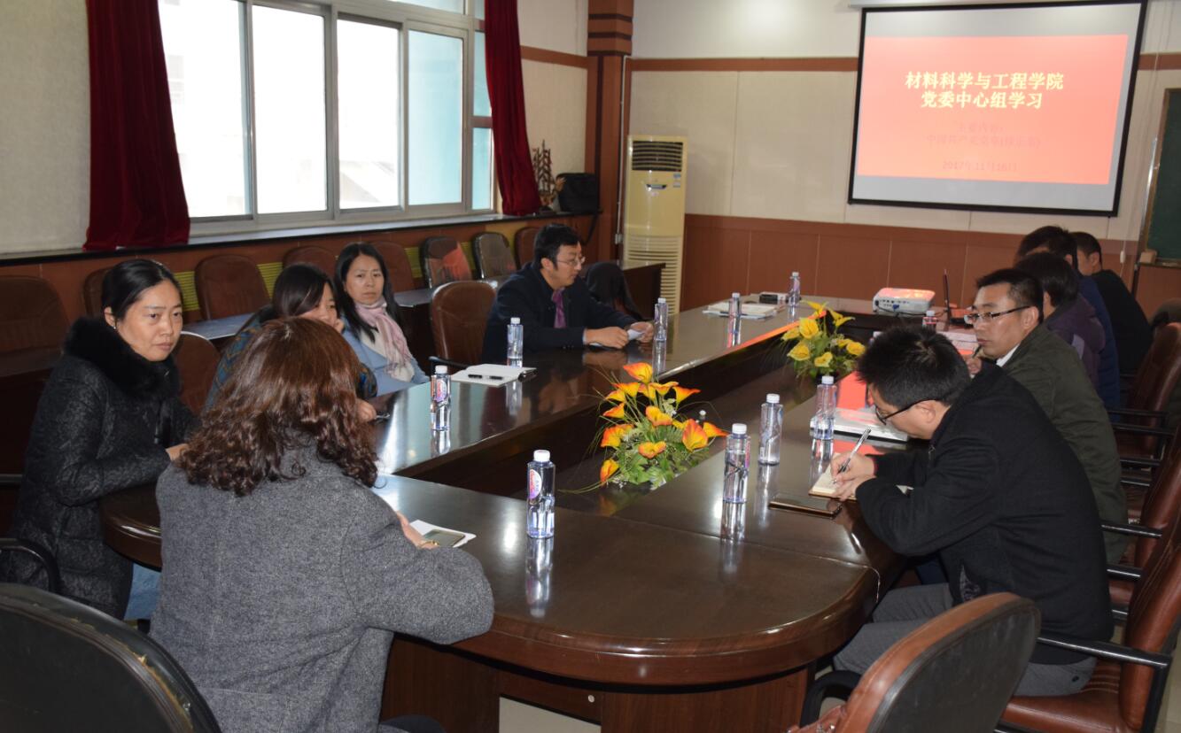 党委在材料A325会议室召开中心组学习扩大会议对中国共产党党章修订案进行了集中学习。本次学习会由党委书记王丽萍主持,党委副书记袁云岗对党章修订案进行了解读。党委中心组成员、教职工党支部书记参加了此次集中学习。