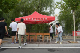 几十位志愿者在里仁七号门和十组团迎新点支起迎新帐篷,拉起横幅,为明后天的迎新工作做好准备。