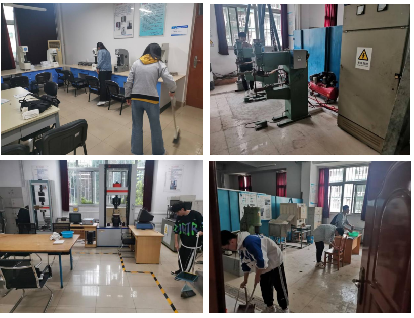 下午三点至五点,同学们共分为四小组,分别对材C105、材C107等实验室进行了清扫。在清扫活动中,同学们主要负责清理实验桌、清扫地面、清洁和整理仪器等工作。为了确保清扫质量,清洁完毕后同学们又针对设备摆放、门窗关闭等方面进行逐一的检查。最后,刘建华老师针对本次进行验收,并对同学们表示了感谢。