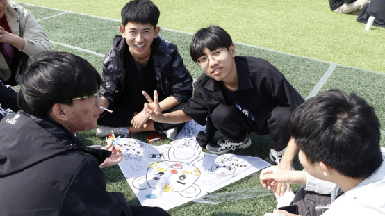 在“画风筝”环节中,同学们纷纷展现出自己的想象力和绘画功底。他们或是认真构思风筝的图案,或是猜测同伴笔下所描绘的形象,亦或是写下对未来的美好愿景。在欢声笑语中,一支支色彩斑斓、充满创意的风筝在同学们的巧手中诞生,它们不仅承载着同学们的创意与活力,也留下了珍贵的合影回忆。