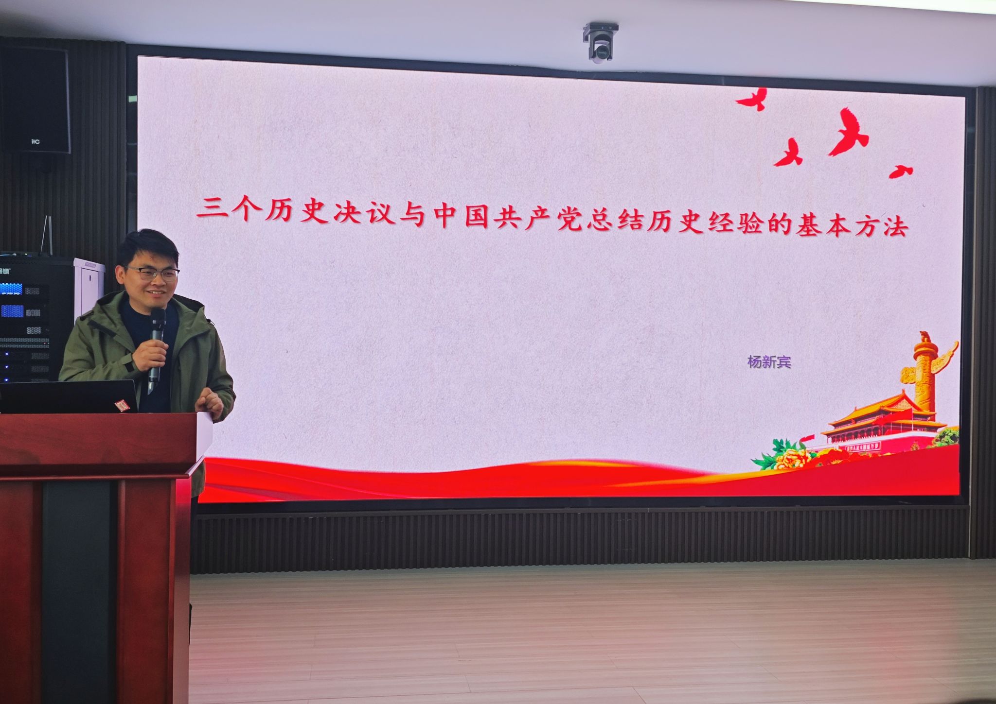 行政楼113会议室以《三个历史决议与中国共产党总结历史经验的基本方法》为主题,为日本a片24名发展对象和41名学生党员讲授专题党课。