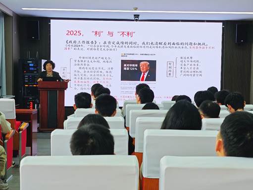 王新华以深厚的理论功底和丰富的教学经验,围绕两会与中国式民生,回顾2024年的工作成就,明确2025年面临的方向和任务,2025年两会的热点、焦点、亮点,四个方面进行深入讲解和阐述。同时,结合创新发展、全方位扩大国内需求、积极扩大有效投资等《2025年政府工作报告》的关键信息为同学们生动解读全国两会精神。王新华强调,我们要保持清醒头脑,增强忧患意识,坚定信心,迎难而上。抓住新一轮科技革命和产业变革的机遇,加快创新驱动发展,推动经济转型升级。要积极应对各种风险挑战,增强发展的稳定性、协调性和可持续性,确保经济社会平稳健康发展。不断提高自身素质和履职能力,进一步坚定推进行业高质量发展的信心和决心。